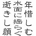 ●緑地:時が経つ感慨が溢れてきます。 ●鉄乙女: いつしか自分が追い越してしまう年が来る。 ●天布留:生あるものは、生を全うしなければ、との思いにいたりました。 ●豆春:写真の人たちは若いままですね。難しいところだと思ったのは、老いもせぬ、の「も」。くどいのか、ないと伝わらないのか……。この点を自分で作っていていつも悩みます ●幻灯齋:写真は老いぬ。私は老いる。年惜しむ。納得!! ●阿美土