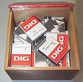 ![]() 開けてビックリ、ジャズ喫茶<DIG>のオリジナル・デザインそのままの箱が出てきた。 |