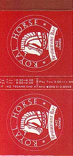 ★マッチが4種類もあるということは、かなり通っていたようですが、うーん、なさけないことに全然思い出しません。当時、おっかけていた女の子がいまして、ま、早い話があっさりとふられてしまったのでありますが、いやがる彼女を無理矢理デートに誘っていたのがこのお店だったように思います。やっぱ、人間というのは暗い過去は早く忘れてしまいたいという自己防衛本能があったりします。全然思い出しません。マッチに書いてあるオーディオリストをみると、なかなかのものであります。が、ほんとに記憶にございません。